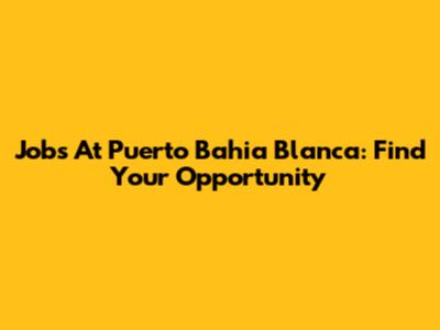 Jobs At Puerto Bahia Blanca: Find Your Opportunity