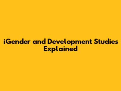 IGender And Development Studies Explained