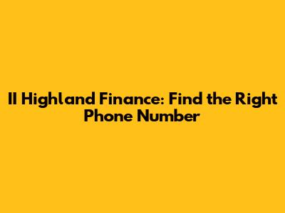 II Highland Finance: Find The Right Phone Number