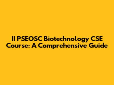 II PSEOSC: Your Guide To Biotechnology And CSE