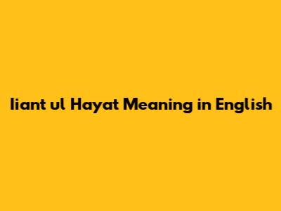 Iiant Ul Hayat: Meaning And Significance