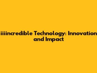 Iiiincredible Technology: Innovation And Impact