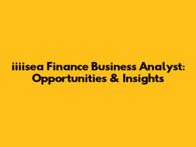 Iiiisea Finance Business Analyst: Opportunities & Insights