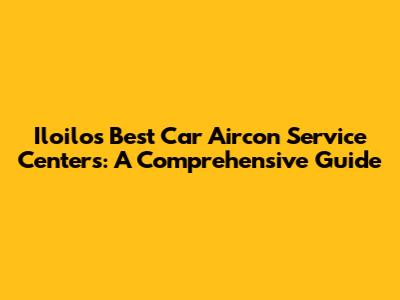 Iloilo's Best Car Aircon Service Centers: A Comprehensive Guide