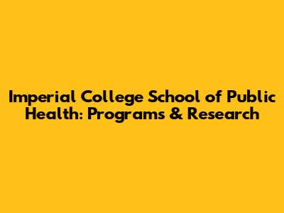 Imperial College School Of Public Health: Programs & Research