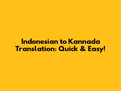 Indonesian To Kannada Translation: Quick & Easy!