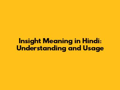 Insight Meaning In Hindi: Understanding And Usage