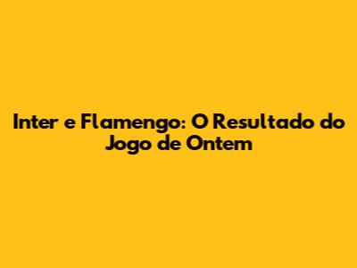 Inter E Flamengo: O Resultado Do Jogo De Ontem