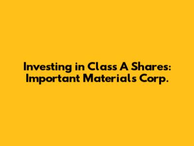 Investing In Class A Shares: Important Materials Corp.