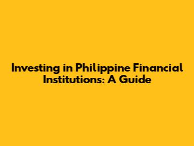 Investing In Philippine Financial Institutions: A Guide