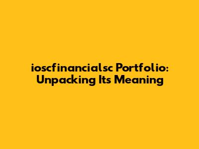 Ioscfinancialsc Portfolio: Understanding Its Meaning