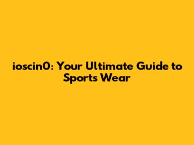 Ioscin0: Your Guide To Sports Wear