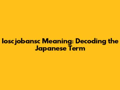 Ioscjobansc Meaning: Decoding The Japanese Term