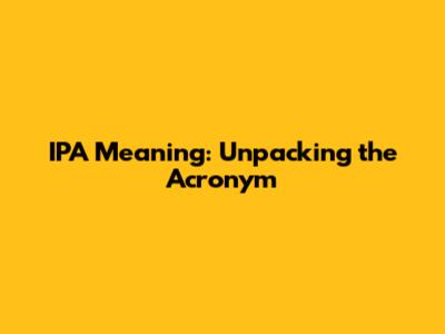 IPA Meaning: Unpacking The Acronym