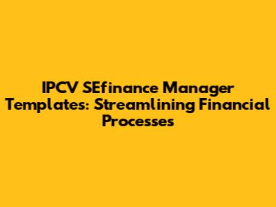 IPCV SEfinance Manager Templates: Streamlining Financial Processes