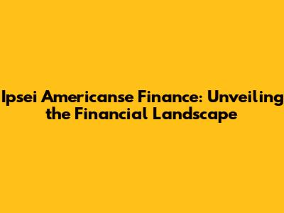 Ipsei Americanse Finance: A Deep Dive