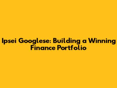 Ipsei Googlese: Building A Winning Finance Portfolio
