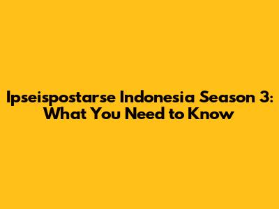 Ipseispostarse Indonesia Season 3: What You Need To Know