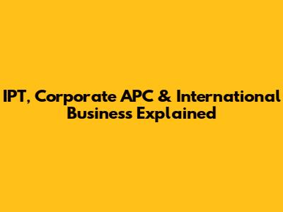 IPT, Corporate APC & International Business Explained