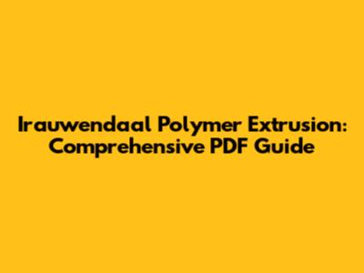 Irauwendaal Polymer Extrusion: Comprehensive PDF Guide