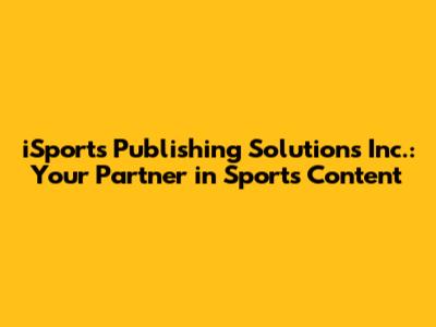 Hey guys! Are you looking for a reliable partner to elevate your sports content? Let's dive into iSports Publishing Solutions Inc. and explore how they can help you shine in the competitive world of sports media. This article will provide a comprehensive overview of their services, expertise, and what makes them a go-to choice for sports organizations, media outlets, and content creators. We'll explore their commitment to high-quality content, their innovative solutions, and how they can help you achieve your publishing goals. So, buckle up and let's get started!