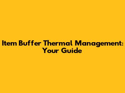 Item Buffer Thermal Management: Your Guide