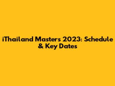 IThailand Masters 2023: Schedule & Key Dates
