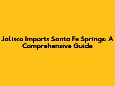 Hey guys! Ever wondered about Jalisco Imports in Santa Fe Springs? Well, you're in the right place! We're going to dive deep into everything you need to know about this spot, from its products and services to what makes it a local favorite. This isn't just a simple overview; we're talking about a detailed look at what makes Jalisco Imports tick, why it's a go-to for many, and how it can cater to your needs. Get ready to explore a world of flavors, products, and experiences right here in Santa Fe Springs!