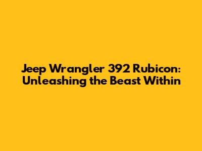 The Jeep Wrangler 392 Rubicon is a true icon, a symbol of freedom and adventure. It's a vehicle that embodies the spirit of the open road, and it's capable of taking you places you never thought possible. It's not the most practical or fuel-efficient vehicle on the market, but it's one of the most exciting and rewarding to drive. If you're looking for the ultimate off-road machine, the 392 Rubicon is the answer. It's a legend reborn, and it's ready to conquer the world.