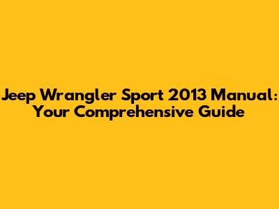 Jeep Wrangler Sport 2013 Manual: Your Comprehensive Guide