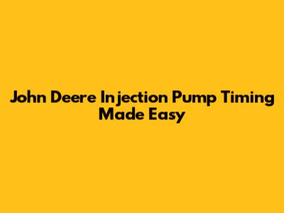 John Deere Injection Pump Timing Made Easy