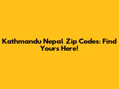 Kathmandu Nepal Zip Codes: Find Yours Here!