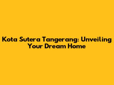 Kota Sutera Tangerang: Your Dream Home Awaits!