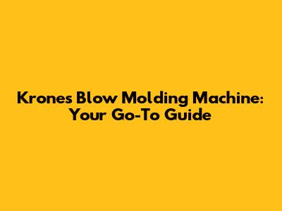 Krones Blow Molding Machine: A Comprehensive Guide