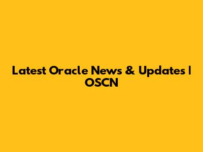 Latest Oracle News & Updates | OSCN