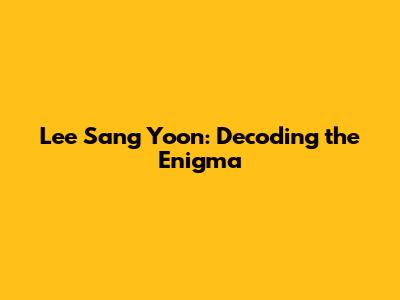 Lee Sang Yoon: Decoding The Enigma