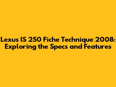 Hey there, car enthusiasts! Today, we're diving deep into the Lexus IS 250 fiche technique 2008. This sleek sedan was a popular choice back in the day, and for good reason. It blended luxury, performance, and reliability in a package that was hard to resist. Whether you're a current owner, a potential buyer, or just curious about this particular model year, this article will provide you with a comprehensive overview of its specifications and features. So, buckle up and let's get started!