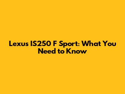 Lexus IS250 F Sport: What You Need To Know