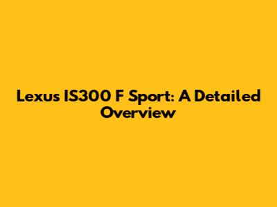 Lexus IS300 F Sport: A Detailed Overview