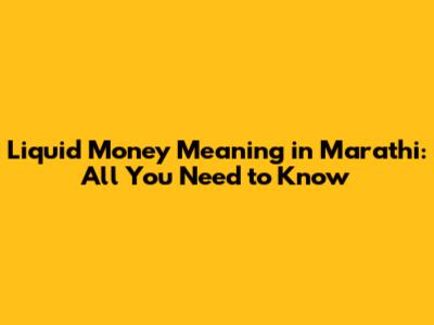 Liquid Money Meaning In Marathi: All You Need To Know