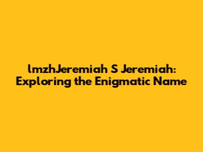 LmzhJeremiah S Jeremiah: Exploring The Enigmatic Name