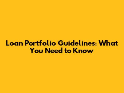 Understanding Loan Portfolio Guidelines