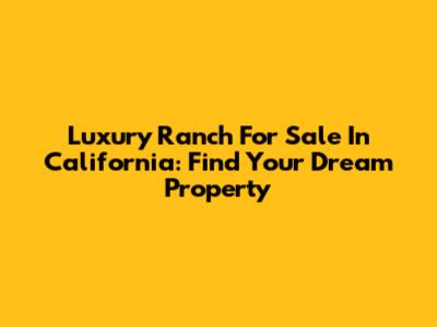 Luxury Ranch For Sale In California: Find Your Dream Property