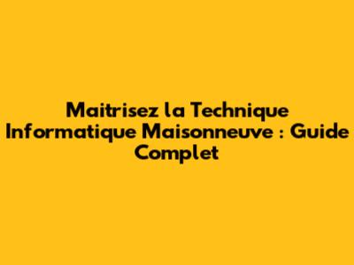 Maitrisez La Technique Informatique Maisonneuve : Guide Complet