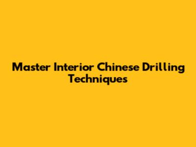 Master Interior Chinese Drilling Techniques