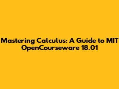 Mastering Calculus: A Guide To MIT OpenCourseware 18.01