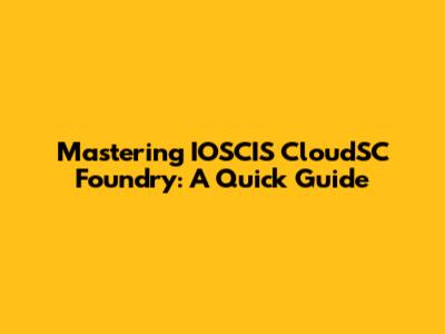 Mastering IOSCIS CloudSC Foundry: A Quick Guide