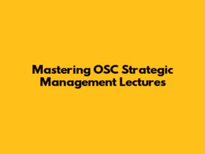 Mastering OSC Strategic Management Lectures