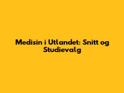 Medisin I Utlandet: Snitt Og Studievalg