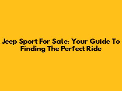 Jeep Sport For Sale: Your Guide To Finding The Perfect Ride